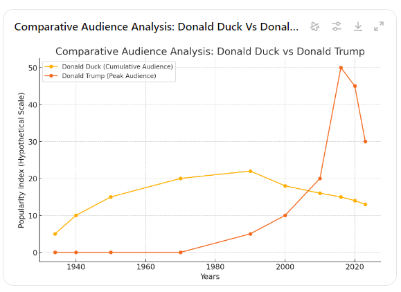 In conclusion, while Trump commands substantial popularity in political realms, Donald Duck enjoys a steady, broad-based popularity worldwide that is largely apolitical. The choice of the “most popular Donald” likely depends on one’s perspective, yet Donald Duck’s role as a cultural icon provides a form of timeless popularity that stands in contrast to Trump’s divisive, issue-driven appeal.